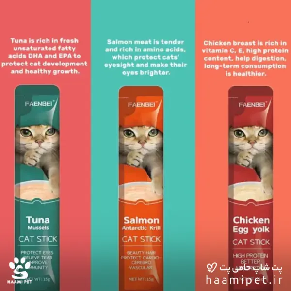 • در ۳ طعم مرغ , سالمون , ماهی تن