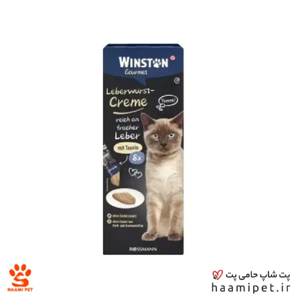 بستنی گربه وینستون گورمت طعم سوسیس جگر موجود در پت شاپ حامی پت،بدون مواد نگهدارنده و قند و رنگ، باعث سلامت گربه دلبند شما می‌شود و او را شاد و خوشحال نگه می‌دارد.هر بسته شامل 8 عدد بستنی 10 گرمی می‌باشد.بستنی گربه Winston، یک تشویقی مناسب برای گربه ها می‌باشد که میان وعده ای کم کالری است و بسیار خوشمزه و لذیذ می‌باشد و گربه شما حتما عاشق آن خواهد شد.همچنین اگر گربه عزیز شما بی اشتها شده، بستنی گربه وینستون با طعم جگر بسیار مناسب او می‌باشد.حالت ژلاتینی بستنی حس چشایی گربه دلبندتان را تحریک کرده و همین باعث می‌شود گربه شما به خوردن آن ترغیب شود.