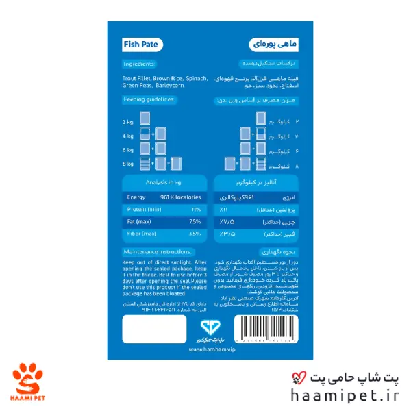 ارزش غذایی غذای گربه هام هام با طعم ماهی پوره ای