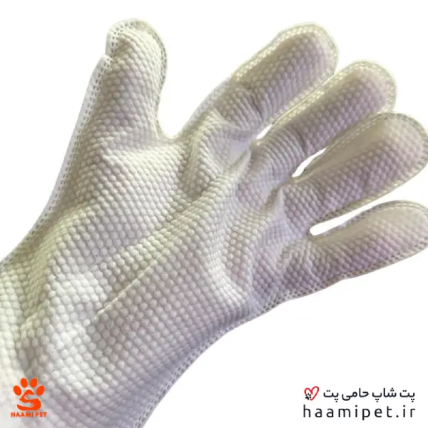 دستکش مرطوب مخصوص نظافت حیوانات خانگی، موجود در پت شاپ حامی پت، یک دستکش بسیار کاربردی می‌باشد که برای حیواناتی که از آب و حمام فراری هستند یا امکان شست و شوی آن ها در بازه های کوتاه مدت بسیار کم است، مناسب است.