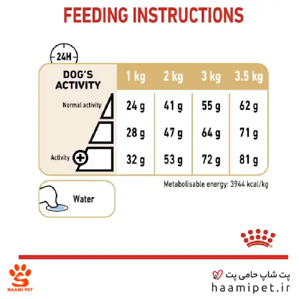 - مقدار غذایی که باید روزانه به سگتان داده شود ممکن است بر اساس شرایط زندگی سگتان، شخصیت و فعالیت وی و درجه حرارت خارج و داخل منزل متفاوت باشد.