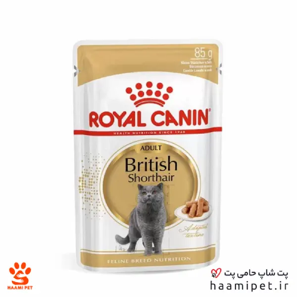 پوچ یا همان غذای مرطوب برند رویال کنین مدل بریتیش Royal Canin British Shorthair Adult Wet Food فرمول خاص غذای مرطوب گربه نژاد بریتیش و اسکاتیش به طور انحصاری برای پاسخگویی به نیازهای خاص گربه های این نژاد بزرگسال (بیش از 12 ماه) تولید شده است. فرمول غذای مرطوب با بافت غذایی بی نظیر بسیار خوش خوراک، تکه های استوانه ای شکل بصورت مخصوص برای گربه نژاد بریتیش و اسکاتیش شما است.