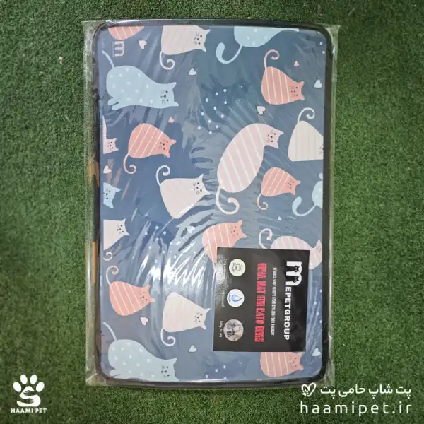 مت زیرانداز ظرف آب و غذا سگ و گربه طرح گربه های رنگی