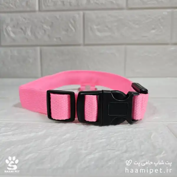 قلاده سگ مدل چراغ دار سایز M رنگ صورتی مخصوص سگ نژاد متوسط