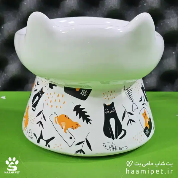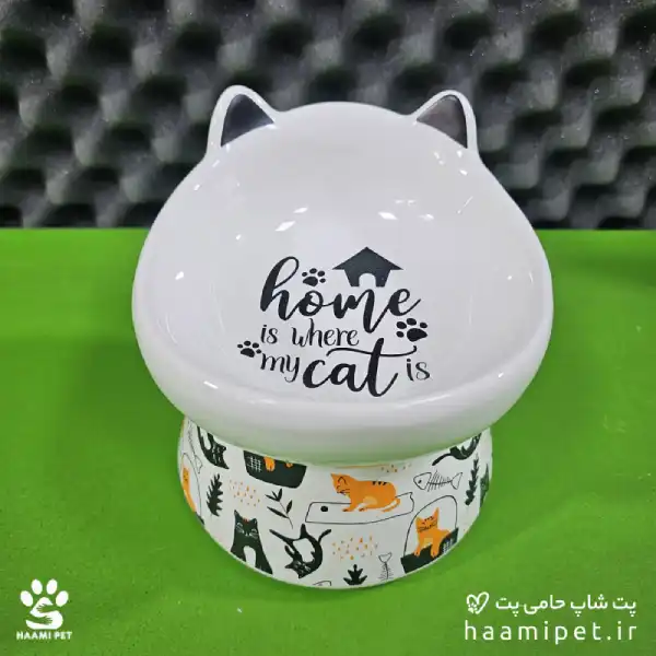 ظرف آب و غذا سگ و گربه سرامیکی پایه دار طرح love me