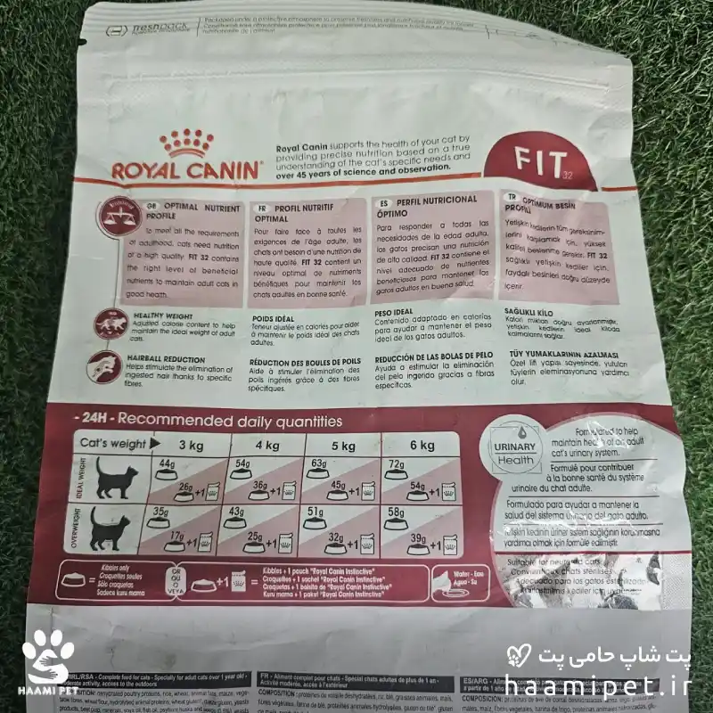 رویال کنین فیت 32 مناسب برای گربه‌های بالغ بین ۱ تا ۷ سال است و به‌طور ویژه طراحی شده است تا تمام نیازهای تغذیه‌ای گربه شما را برای حمایت و حفظ وضعیت سالم که گربه شما در حال حاضر در آن قرار دارد، برآورده کند. گربه شما به تغذیه با کیفیت بالا نیاز دارد تا تمامی نیازهای بلوغ را برآورده کند – به همین دلیل رویال کنین فیت 32 دارای ترکیبات مغذی بهینه است که شامل سطح مناسبی از مواد مغذی مفید برای کمک به حمایت و حفظ سلامتی خوب گربه بالغ شما است. علاوه بر این، رویال کنین فیت 32 با ترکیب مناسبی از مواد مغذی مفید – مانند انواع مختلف ویتامین‌ها و مواد معدنی – برای کمک به حفظ یک سیستم ادراری سالم برای گربه‌های بالغ شما فرموله شده است. به خاطر وجود فیبرهای غذایی خاص، رویال کنین فیت 32 همچنین به دفع گربه شما از مو و پشمی که ممکن است مصرف کرده است، کمک می‌کند. درنتیجه، این به معنای کاهش قابل‌توجه حجم گلوله‌های مویی است.