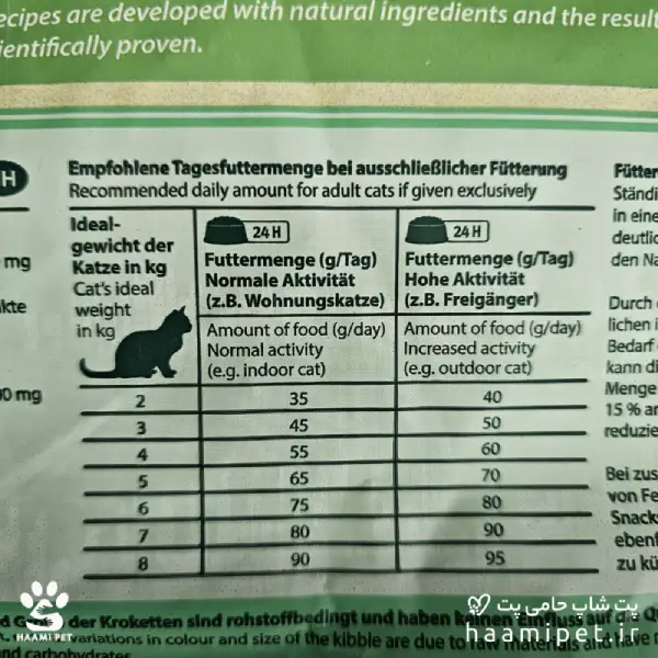 میزان غذای مورد نیاز هر گربه، با توجه به سوخت و ساز بدنش متفاوت است، بنابراین میتوانید مقدار غذا پیشنهادی را تا 15% کم یا زیاد کنید
