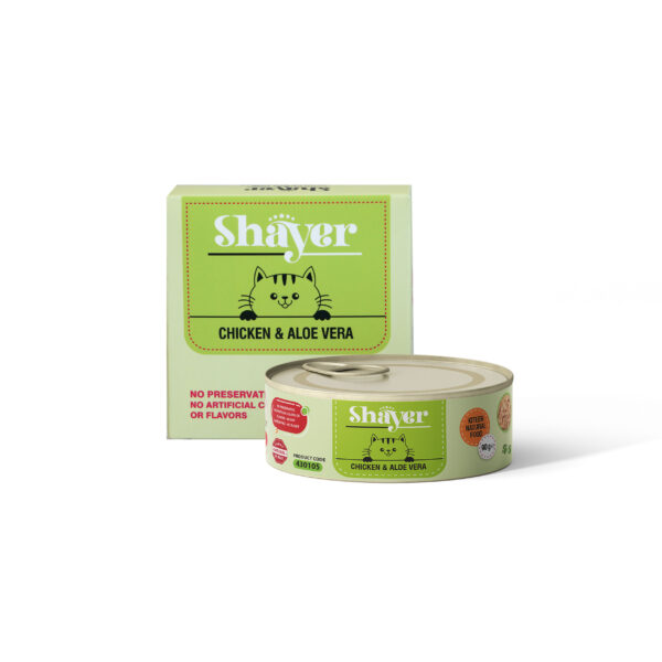 کنسرو نچرال بچه گربه شایر طعم مرغ و آلوورا 90 گرمی