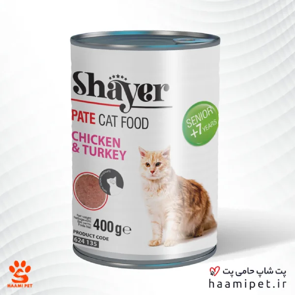 کنسرو پته گربه شایر با طعم مرغ و بوقلمون مدل سینیور 400 گرمی
