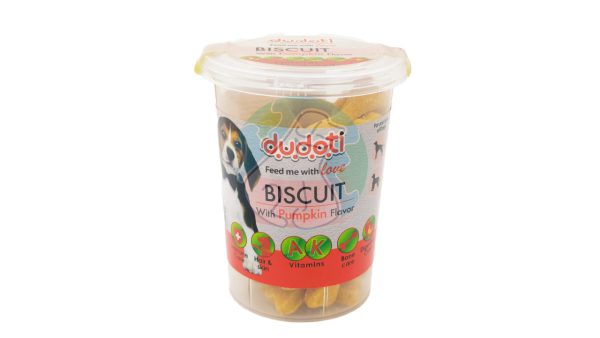 تشویقی بیسکوییت سگ دودوتی با طعم کدوحلوایی وزن 150 گرم