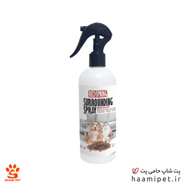 محلول ضد عفونى كننده محیط رد اسپرینگ با عصاره قهوه بر پایه نانو نقره، از بین برنده بو و رد ادرار فرموله شده برای ضد عفونى كردن و تمیز كردن لوازم، اكسسورى، ظرف غذا جاى خواب، باكس، قفس و محیط زندگی سگ و گربه خانگى.