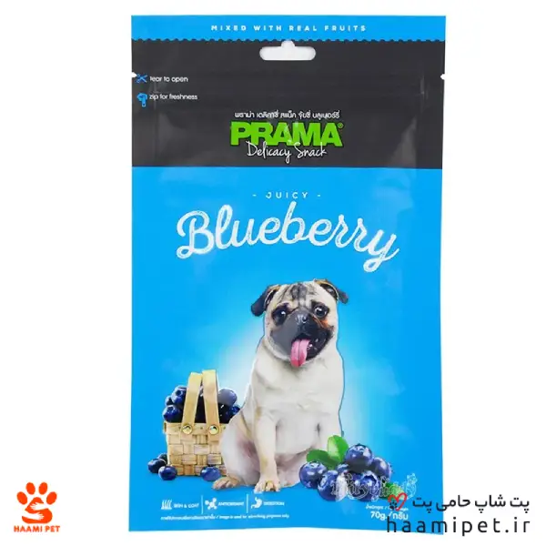 شما میتوانید تشویقی سگ پراما با طعم بلوبری را از پت شاپ حامی پت به صورت اینترنتی خریداری کنید.