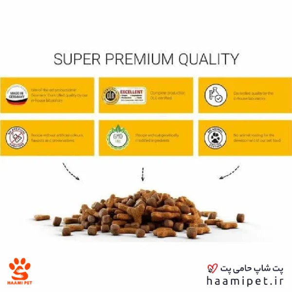 همچنین می‌توانید برای خرید حضوری با مراجعه به پت شاپ حضوری حامی پت در تهران، این محصول و سایر غذاهای خشک گربه خانگی و دیگر ملزومات پت خود را خریداری کنید.