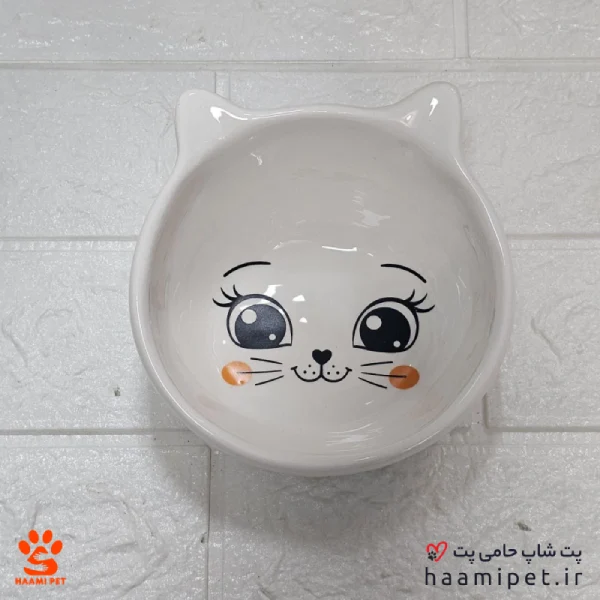 خرید ظرف آب و غذا سگ سرامیکی بدون پایه طرح چشم گربه