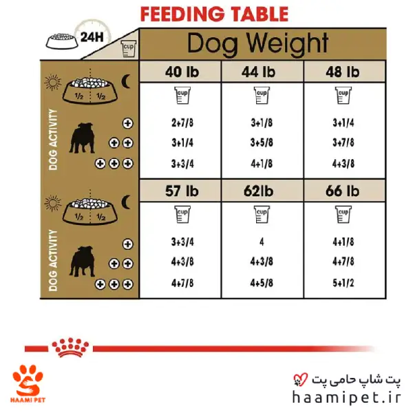 - مقدار غذایی که باید روزانه به سگتان داده شود ممکن است بر اساس شرایط زندگی سگتان، شخصیت و فعالیت وی و درجه حرارت خارج و داخل منزل متفاوت باشد.
